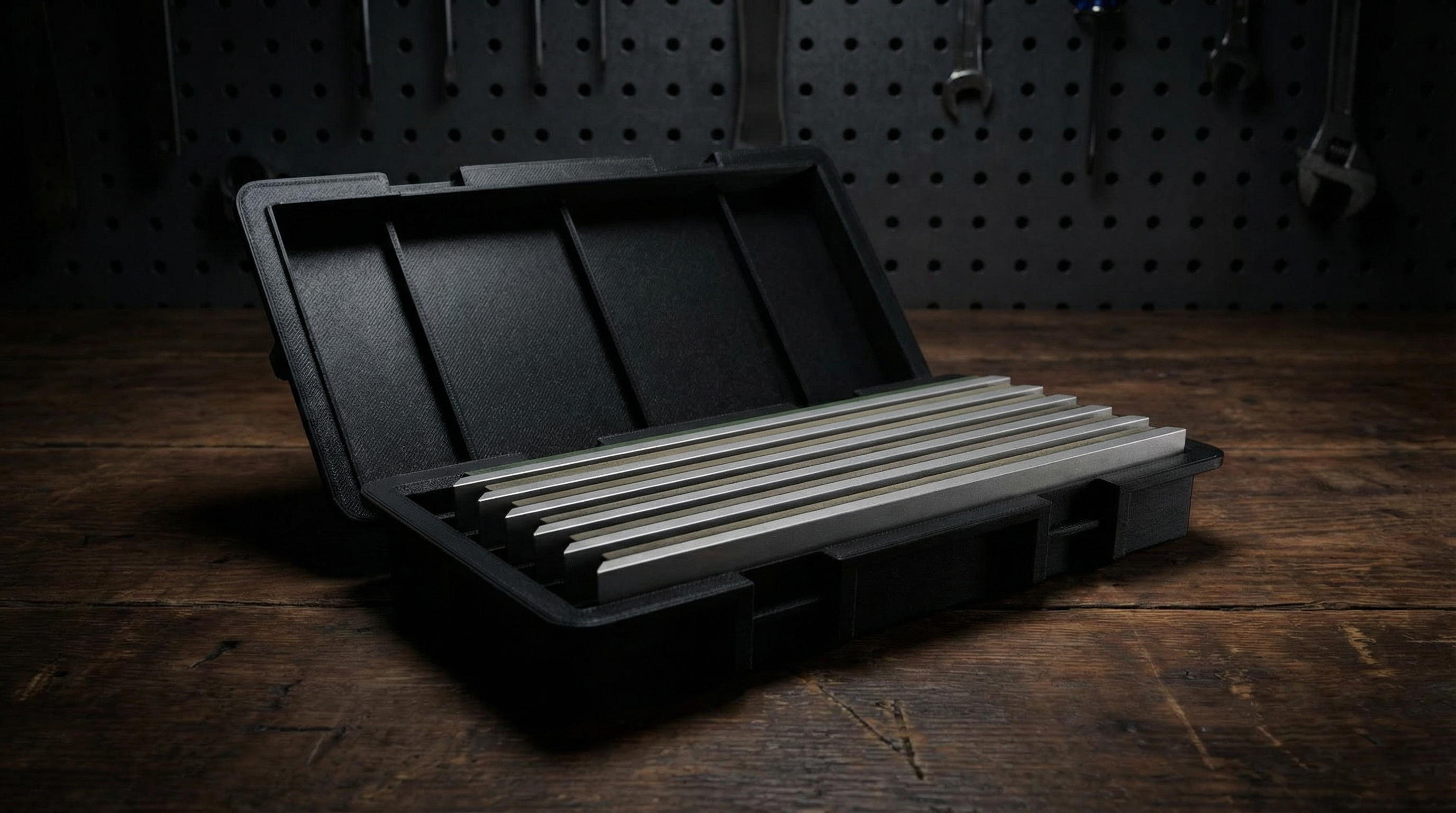 • Oil & Loctite Holders: Three precision-cut slots are perfect for holding bottles of lubricant, Loctite, or cleaning fluids.