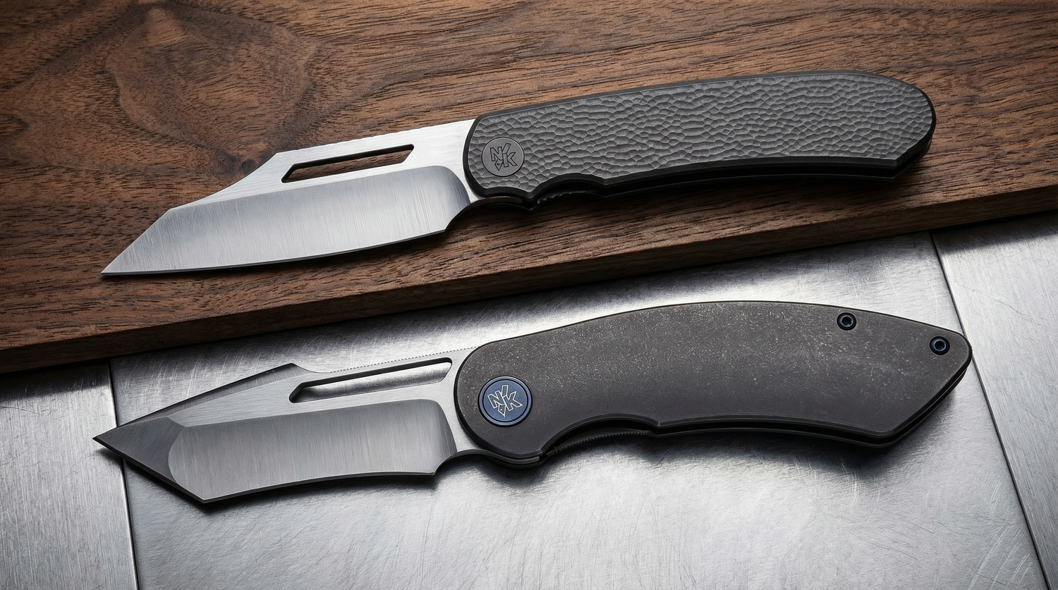Most folding knives ship in our signature NKC packaging. Fixed-blade models include a fitted sheath when applicable. Each product page lists exactly what is included.
